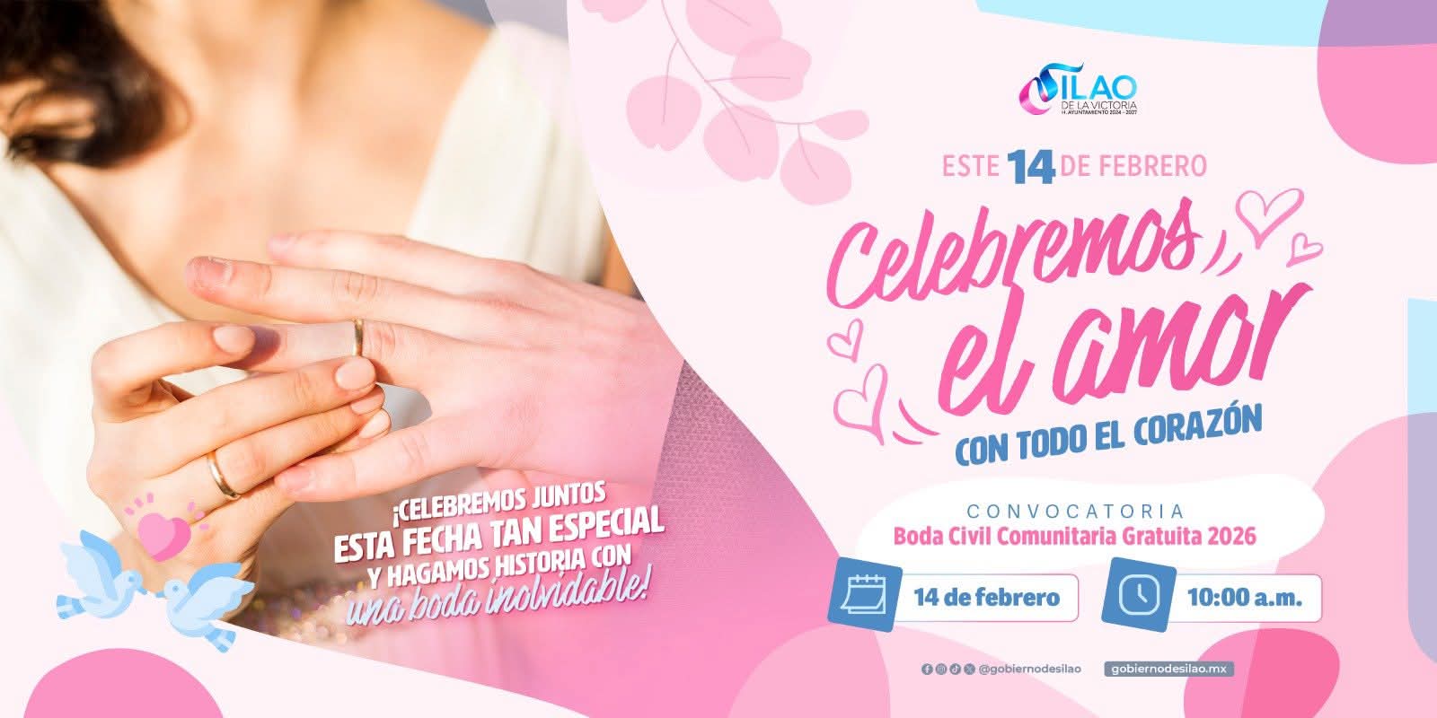 El Gobierno Municipal de Silao, en coordinación con la Dirección General del Registro Civil del Estado de Guanajuato, a través de la Secretaría de Ayuntamiento, convocan a la ciudadanía interesada en contraer matrimonio civil de forma gratuita, a registrarse para la Segunda Edición de las Bodas Comunitarias a realizarse el próximo 14 de febrero en el Jardín Principal a las 10:00 de la mañana.